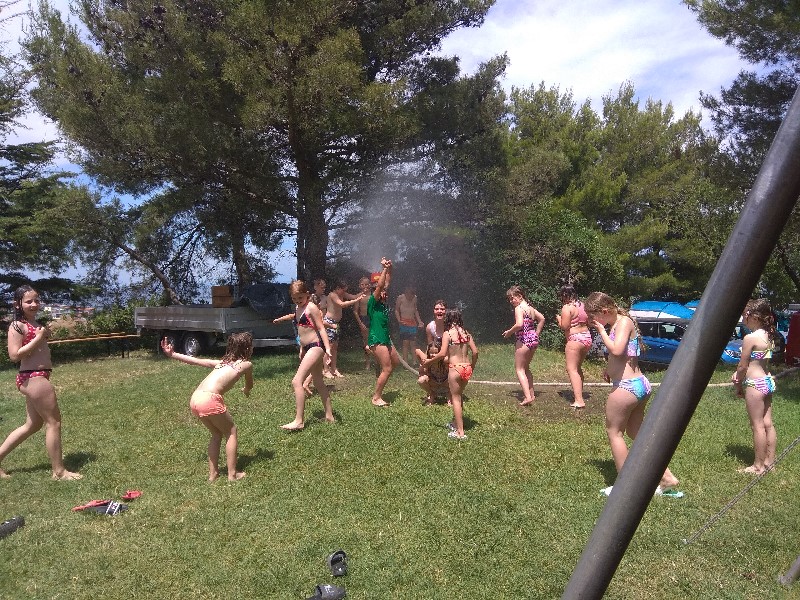 Po mirni noči smo se zbudili v jutro brez zastave. Vsi poklapani smo opravili juranjo telovadbo, nato pa je sledilo iskanje, ki je kmalu obrodilo sadove in zajtrke je bil kmalu na mizi. Dan smo nadaljevali po ustaljenem urniku nabiranja znanja v taboru in plavanja v morju, v prostih uricah pa smo predvsem iskali senco 😊. V popoldanskem času smo izvedli za pionirje štafetno igro z vedrovko, po večernem umivanju pa je bila končno na vrsti tombola, ki je poskrbela za ravnopravšnji vnos sladkorja, risala nasmehe na obraz in nas vse ponesla v dobrovoljni spanec.