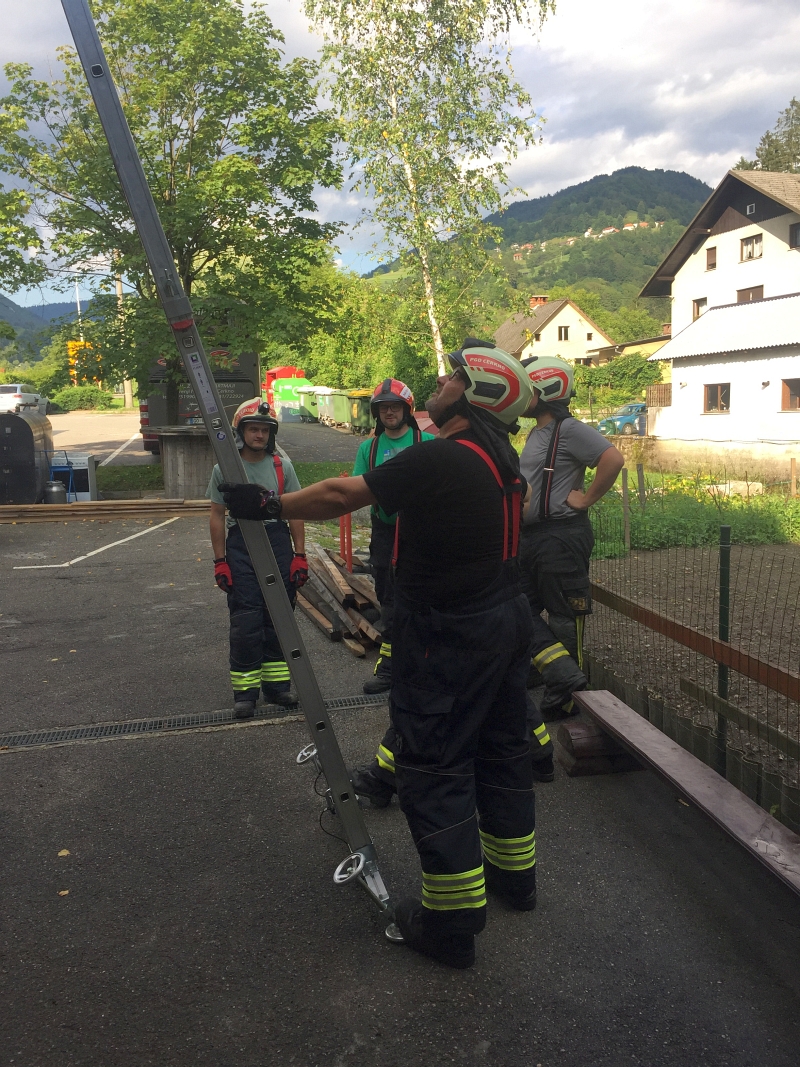 V soboto smo imeli redne mesečne vaje. Spoznavali smo uporabo in delo z lestvami, ki jih imamo v društvu. Razdeljeni na tri točke smo opravili vaje s trodelnimi, stikalnimi in kljukastimi lestvami.